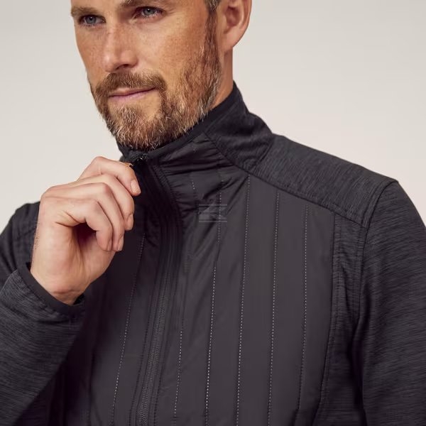 Super stretch fleece med blød overflade kombineret med quilt på kroppen.Jakken har:
