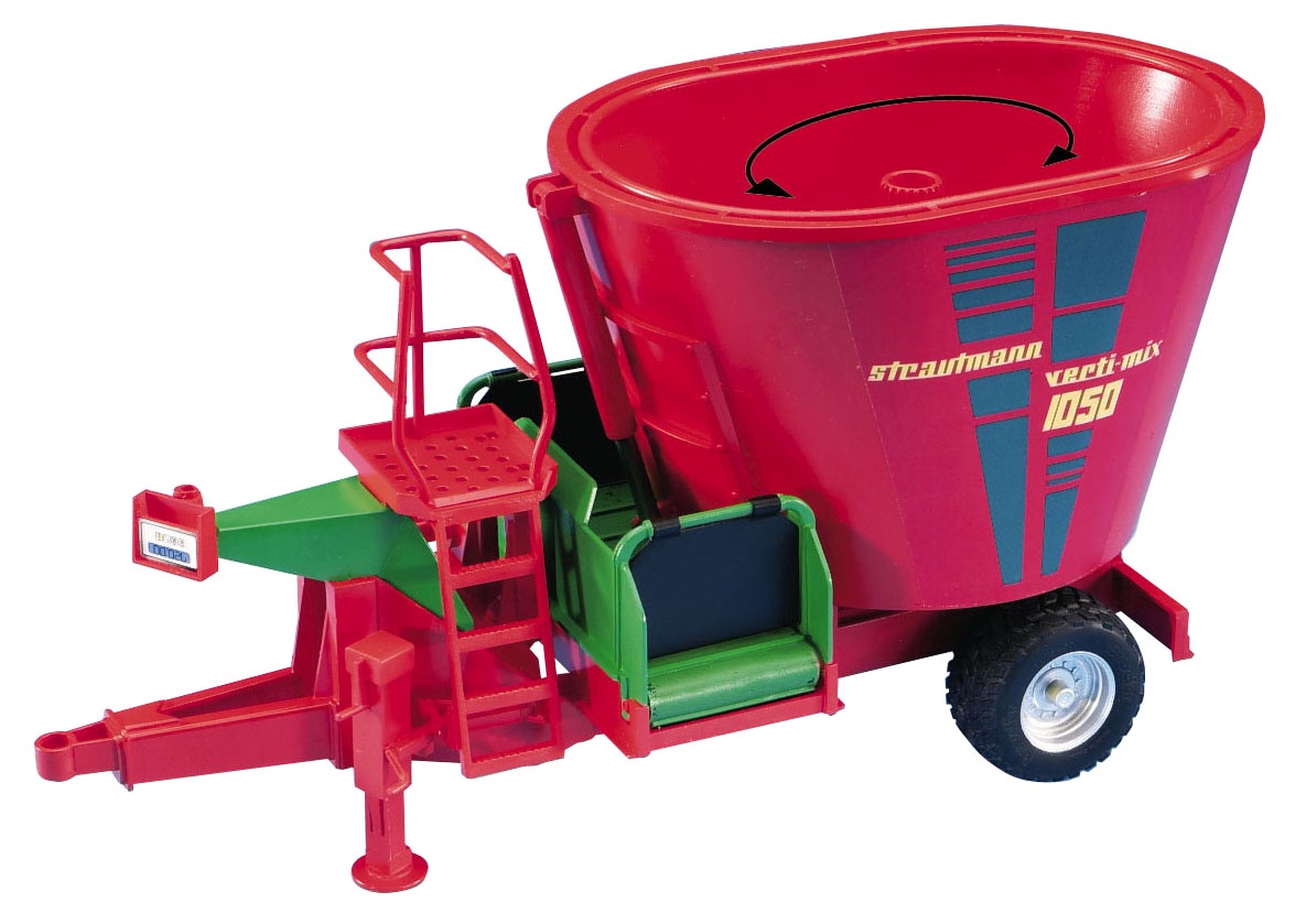 Bruder fuld-foderblander Strautmann Roterende plastikknive i blanderen Slidsken kan åbnes Fuldt fungerende transportbånd og digitalt display kan vippes 1:16 35,3 x 14,1 x 17,6 cm