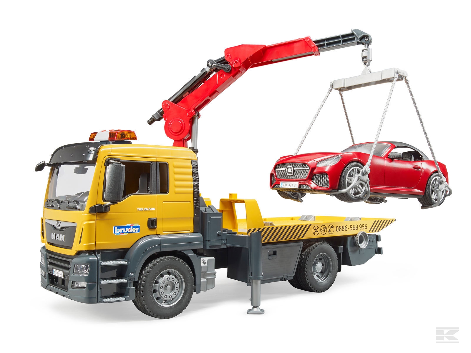 MAN TGS bjergningskøretøj med Roadster og L+S modul fra Bruder.