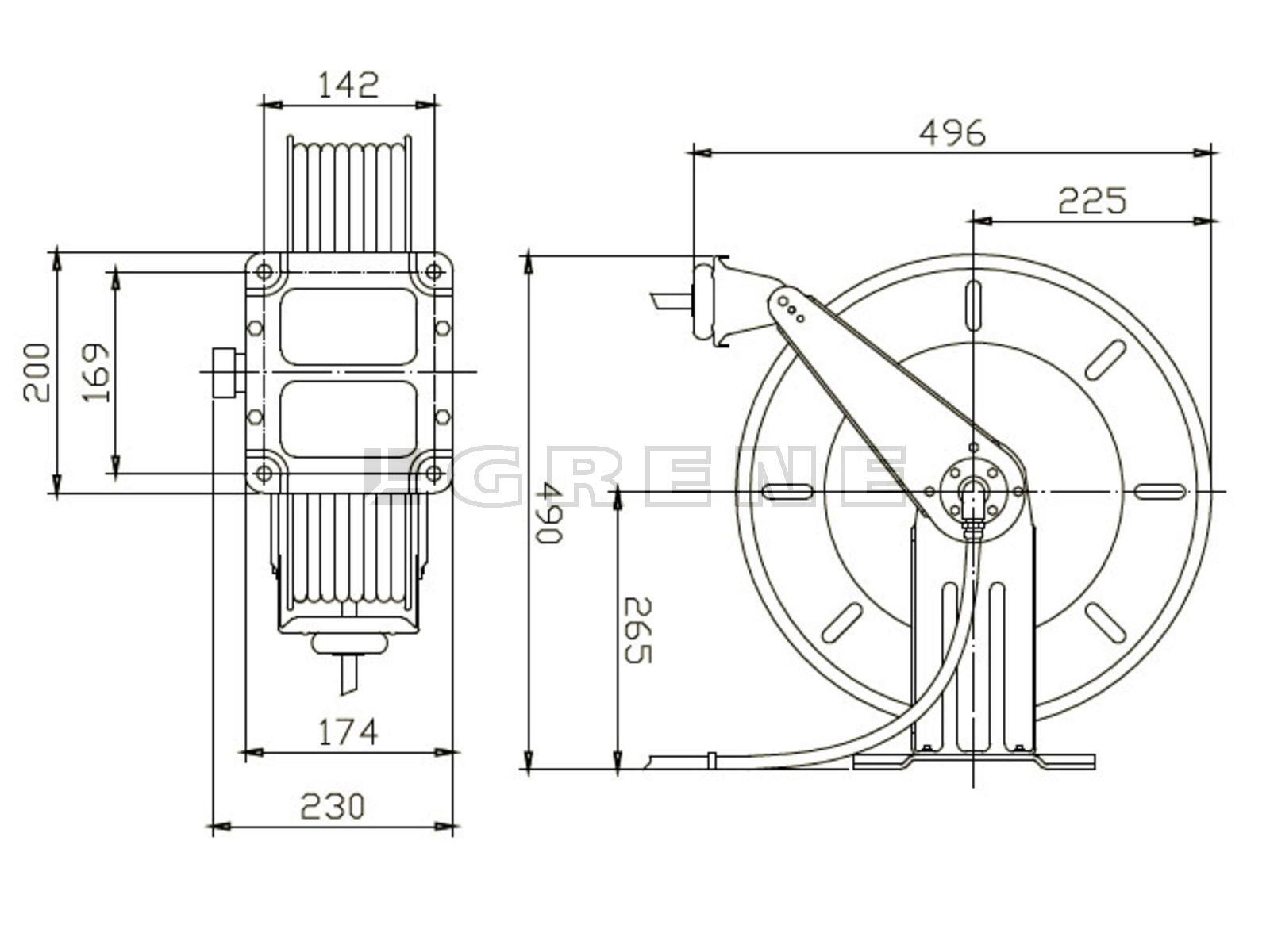 Flowconcept 20 mtr. slangeopruller til højtryksrenser Med viton pakninger, kan anvendes sammen med hedtvandsrensere. Max. arbejdstemperatur 150 grader. Slangediameter: 3/8' Tilslutning med indv. 3/8' BSPT konisk rørgevind.