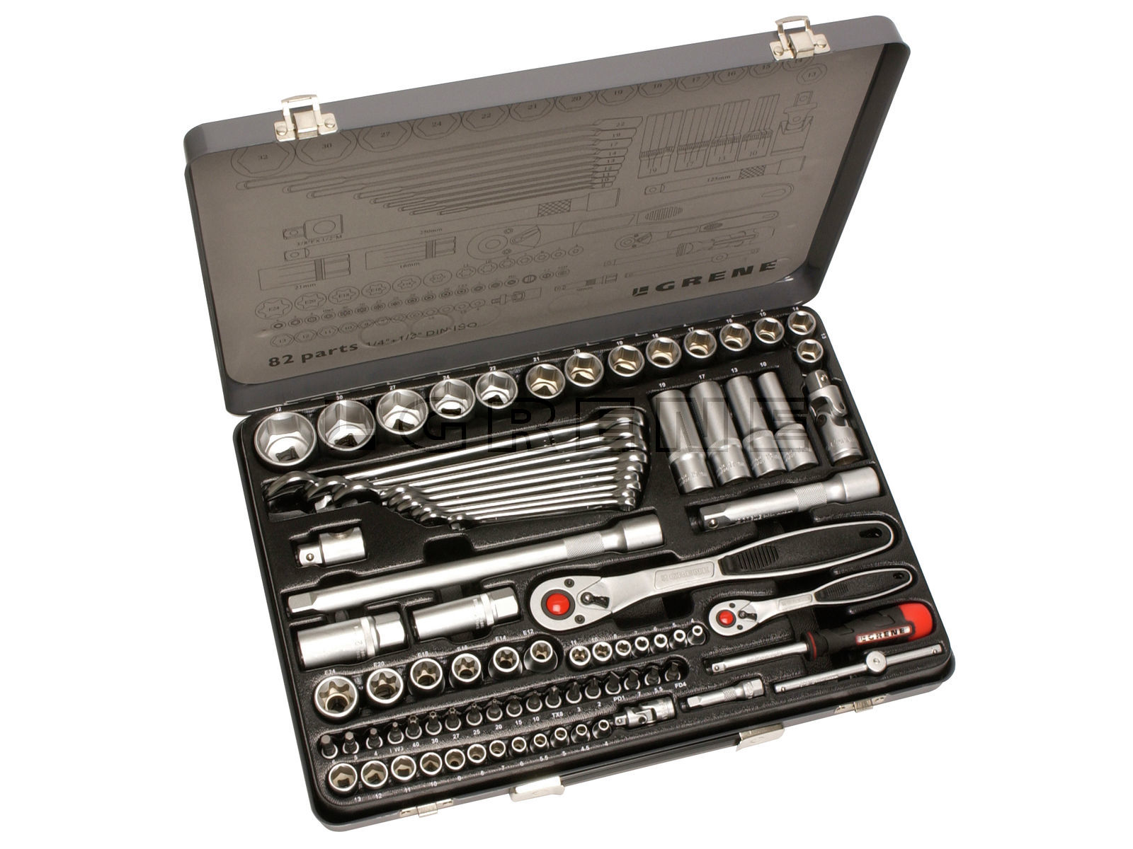 Grene 1/4' og 1/2' topnøglesæt - 82 dele