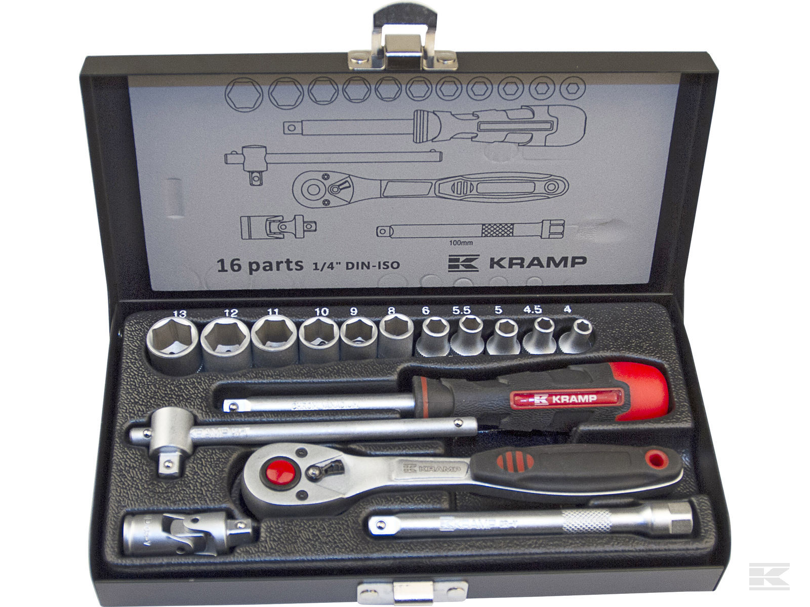 Kramp 1/4' topnøglesæt med 16 dele