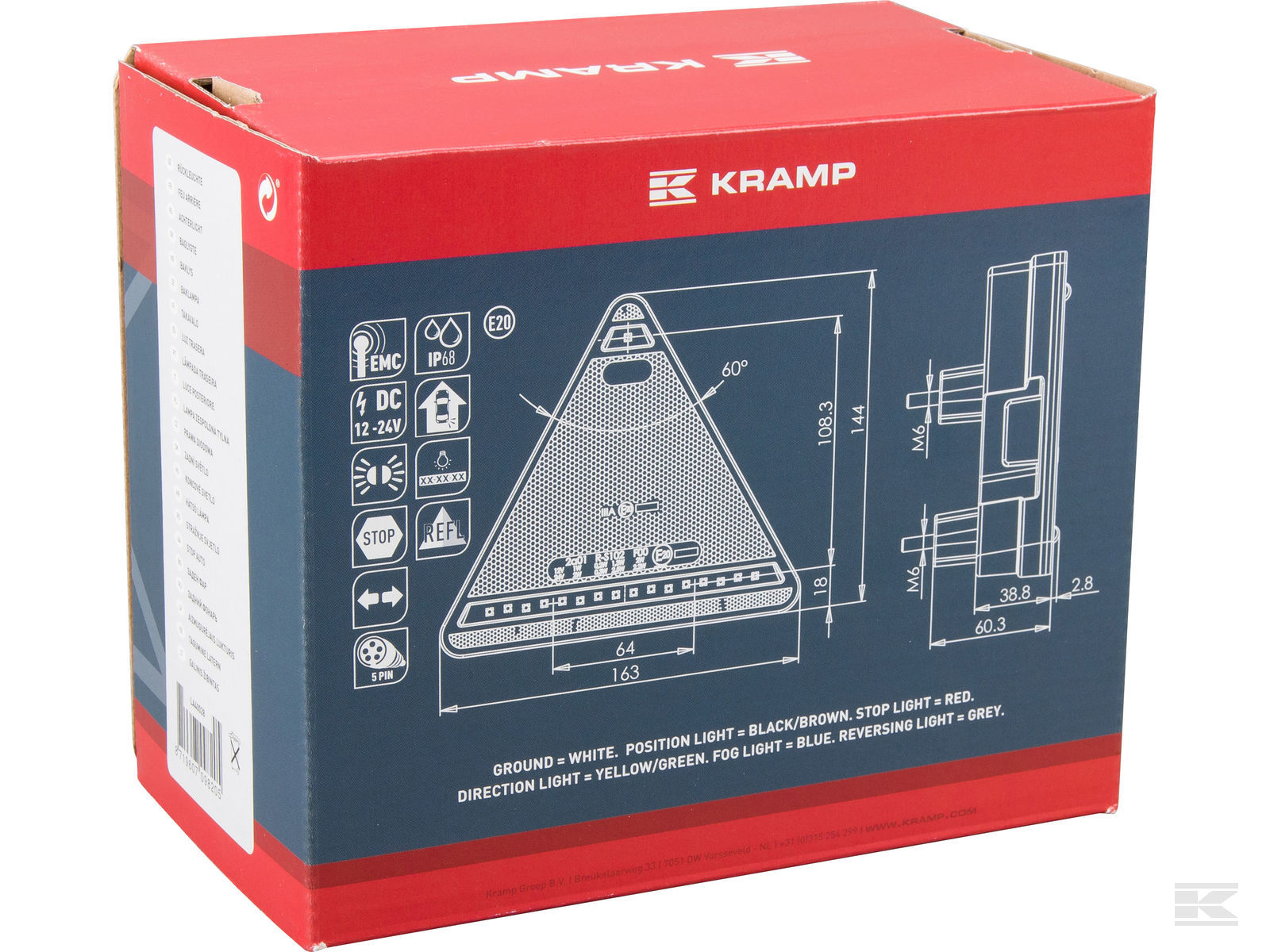 - Kramp LED Baglygte trekant ventre m/deutsch stik