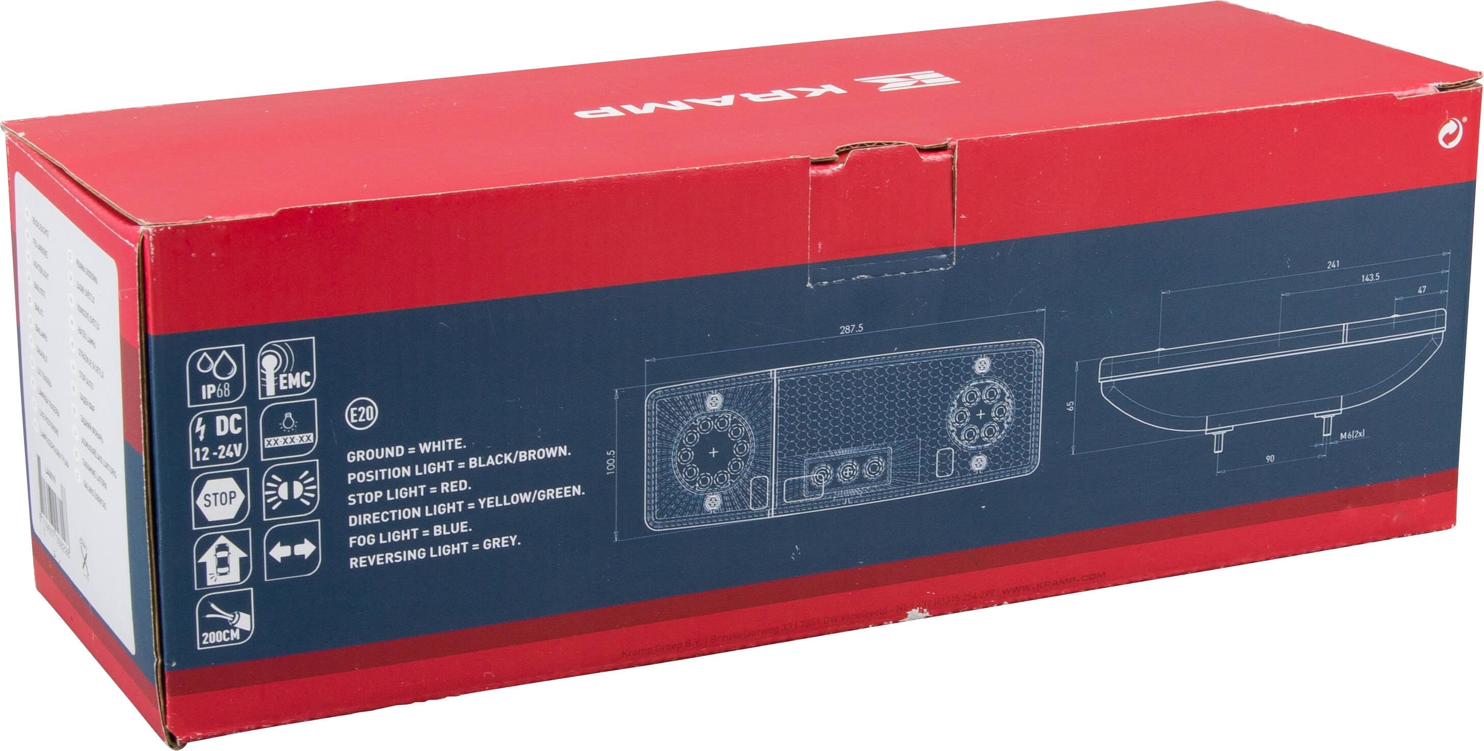 Funktion: Positionslys, bremselys, blinklys Dimensioner L: 287.5 B:100.5 H: 65mm Leveres med 2 mtr. ledningProdukt specifikationer