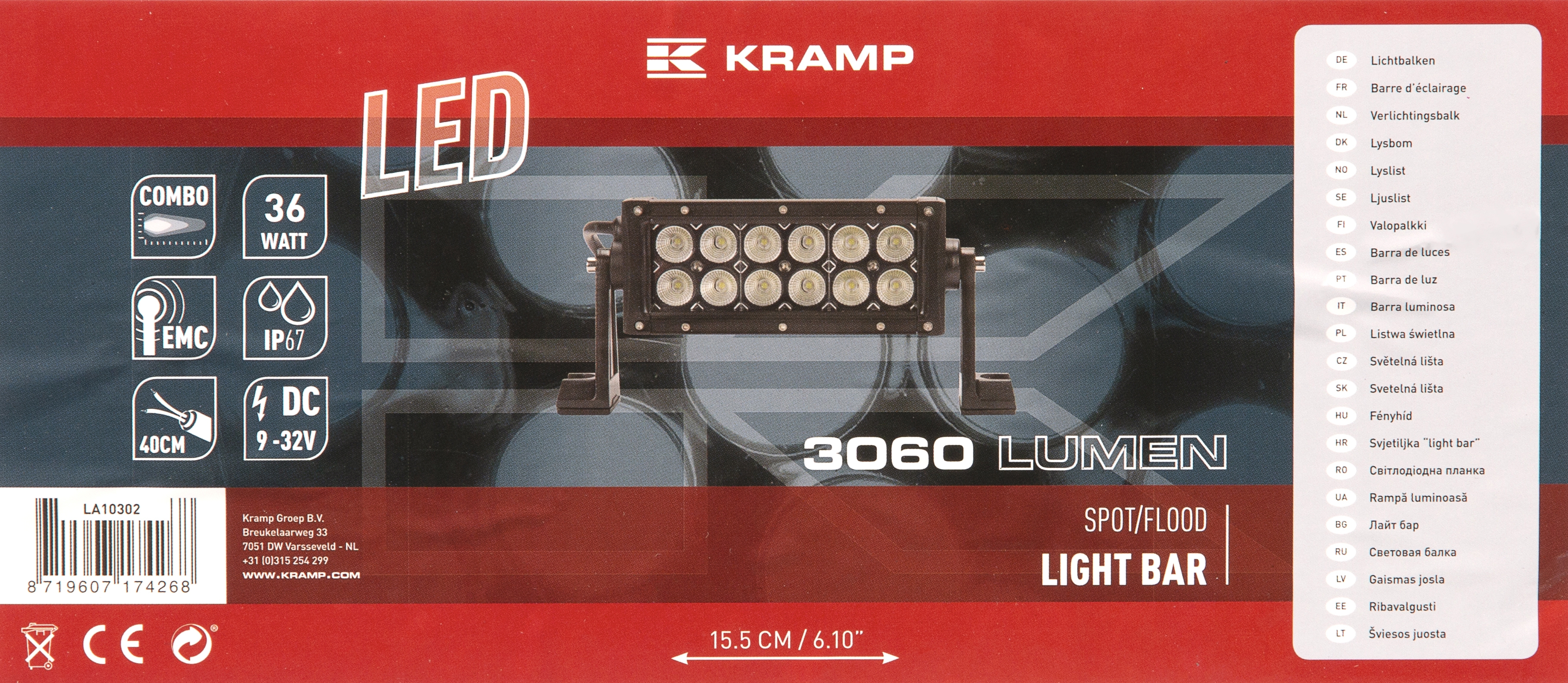 Kramp LED lygtebar Combo 3060 Lumen m/ Ledning