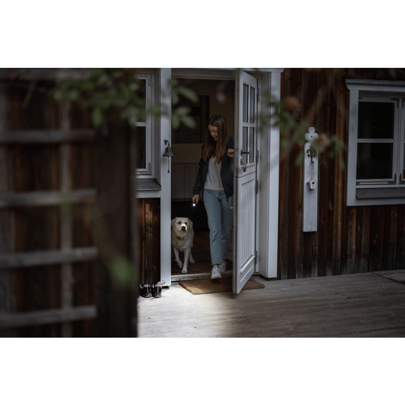 Lygten har også et rødt lys samt et automatisk S.O.S blink.