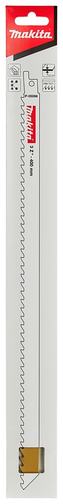 Makita Reciprosavklinge til skæring af træ og kunststof.Denne TC/HM-klinge har en samlet længde på 400 mm. og en arbejdslængde på 380 mm.