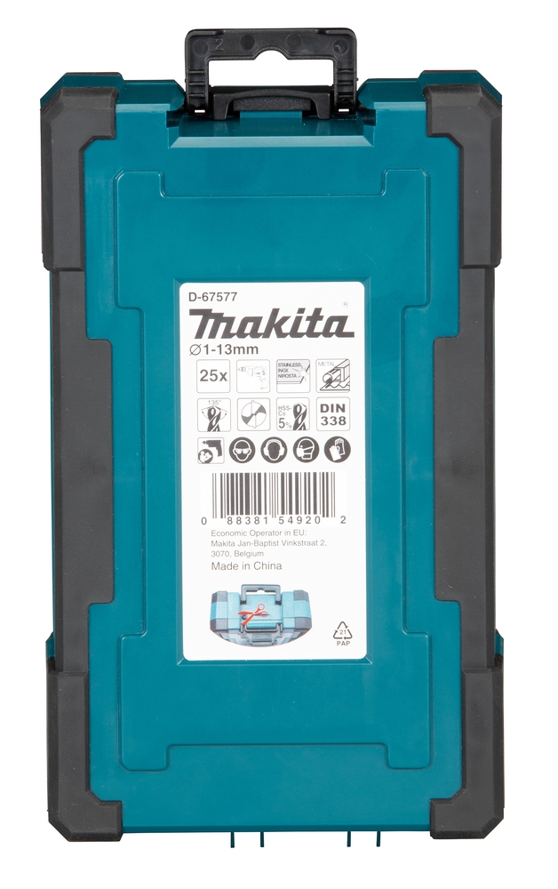 Borsæt med 25 dele fra Makita HSS-Cobolt bor, som egner sig til metal og rustfrit stål