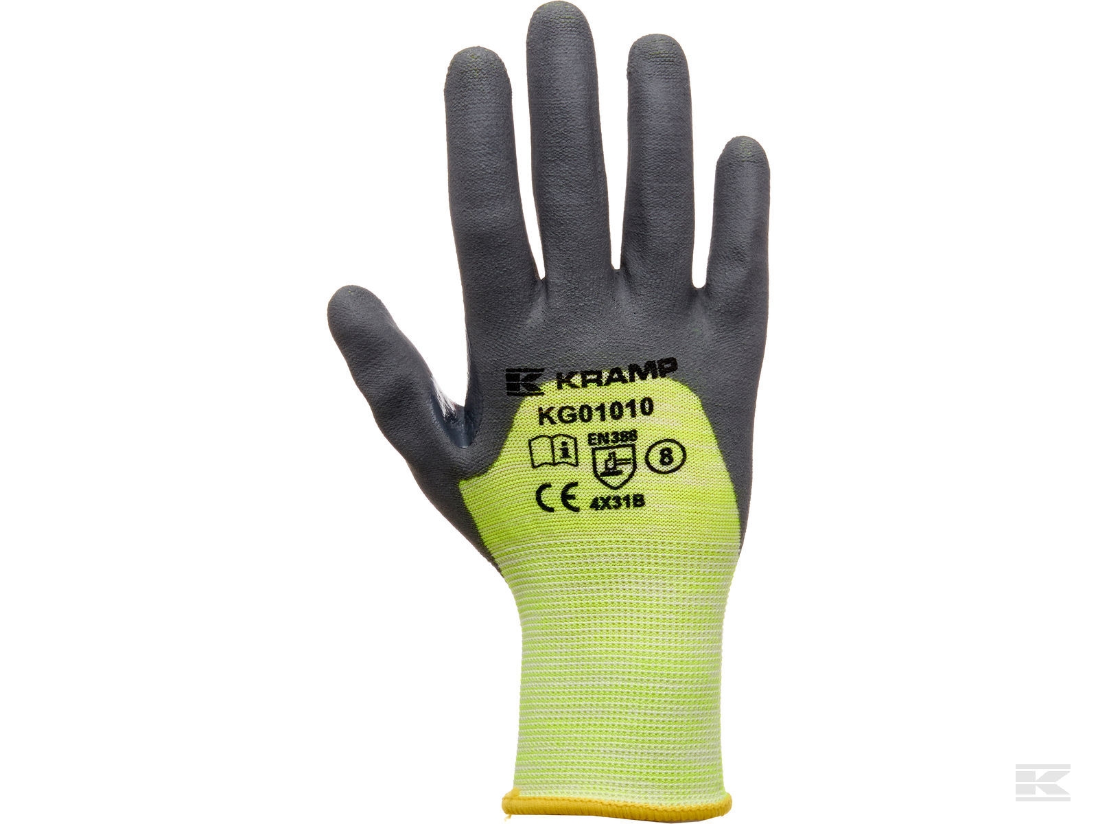 Montagehandske halvdyppet hi-viz fra Kramp.