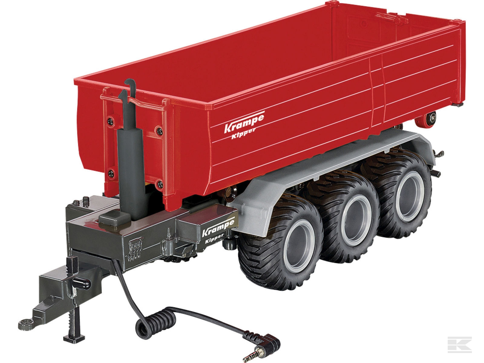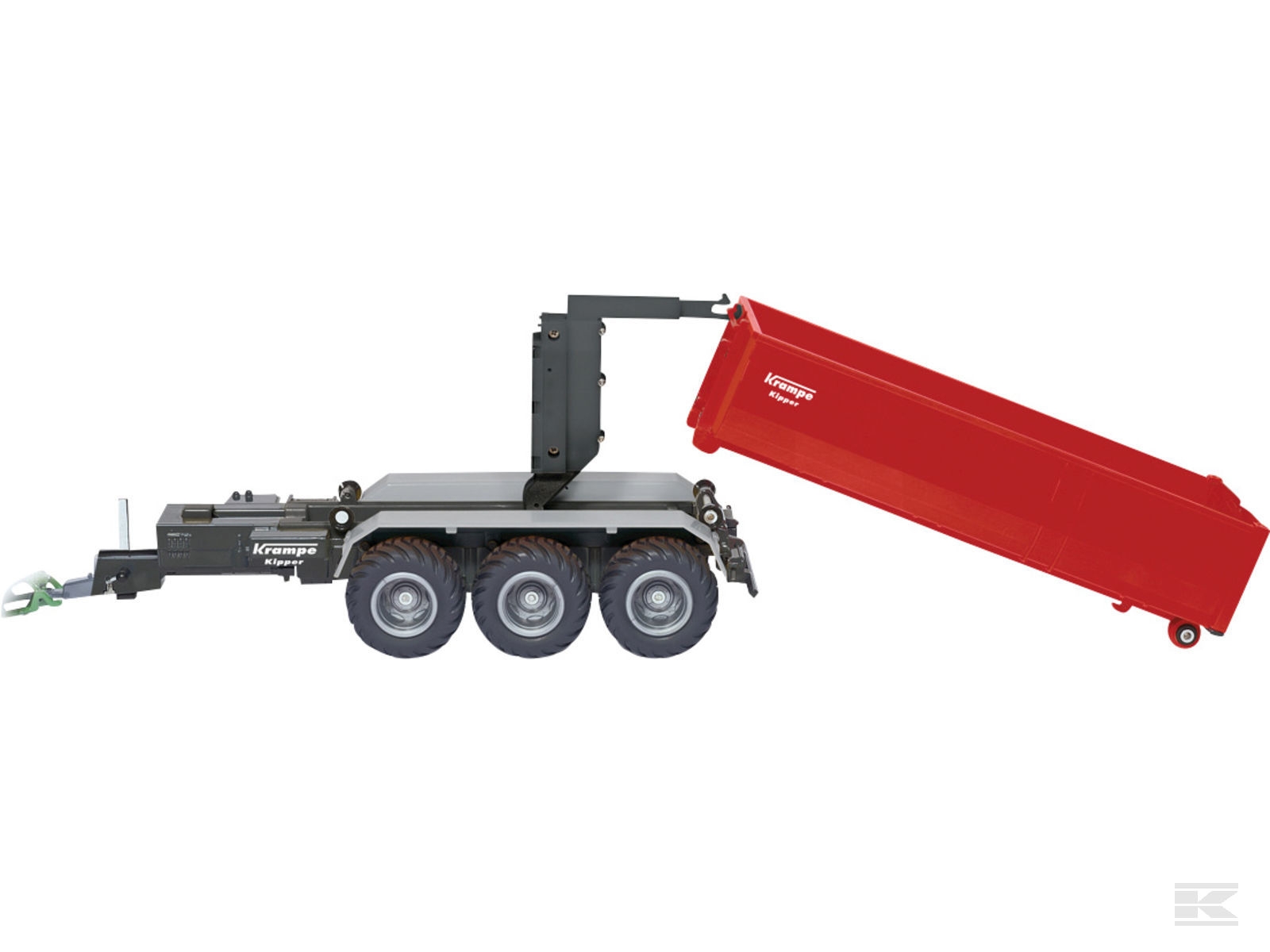 Fjernstyret Krampe 3-akslet trailer med kroghejs fra Siku.