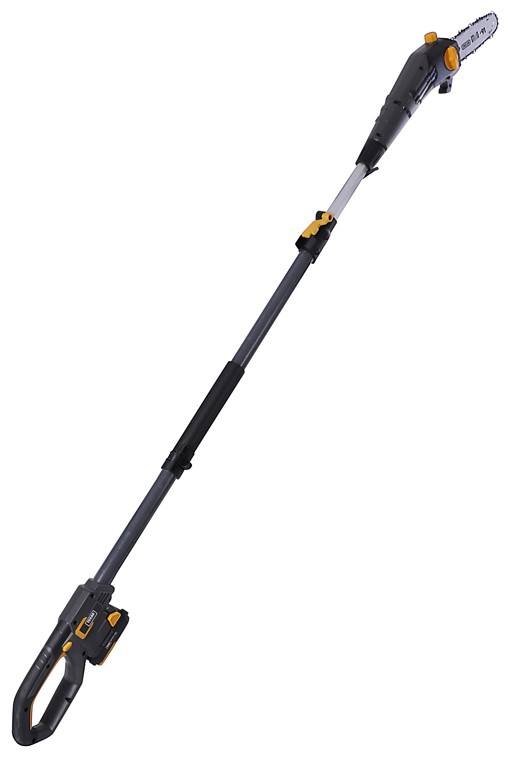 Texas PCX2000 stangkædesav på batteri Stangkædesaven er udstyret med teleskopskaft, så totallængden kan ændres fra 192 cm til 259 cm 8' sværd (20cm) Vægten er kun 3,0 kg. (3,4 kg. inkl. batteri).