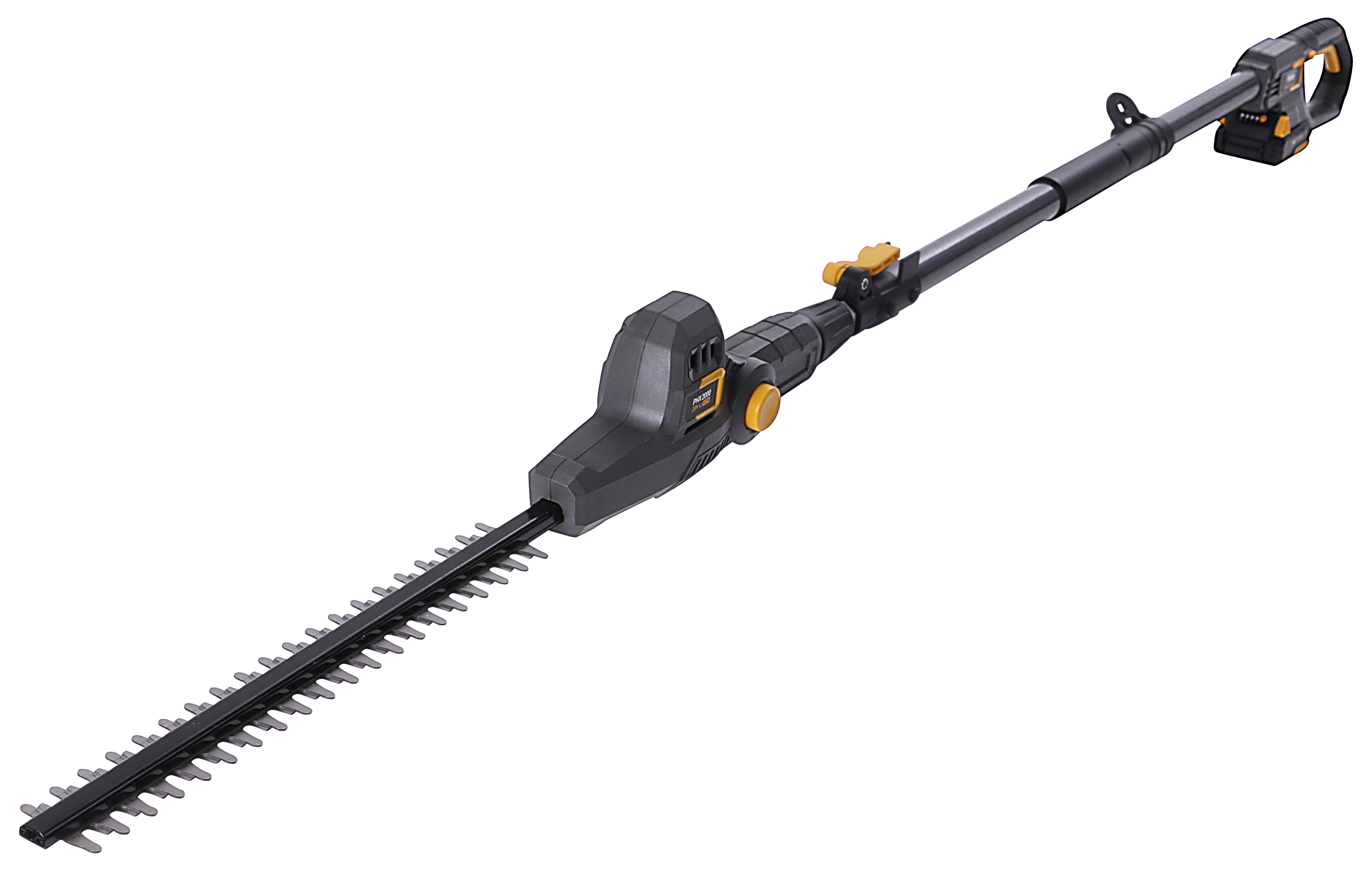 Stanghækkeklipperen er udstyret med teleskopskaft, så totallængden kan ændres fra 211 cm til 278 cm - uden brug af værktøj. Den kan klare ekstra høje hække, og giver også mulighed for nemt at klare toppen af hækken uden at man skal op på en stige. Den er ideel til ligusterhækken og du slipper for at bøvle med ledning eller larm fra en benzin motor. Vinklen på hækkeklipper hovedet kan nemt ved at trykke på en knap justeres opad i 1 position, ligeud til 0 garder og nedad i 4 positioner til 90 grader. Arbejdstid pr. opladning: 30-40 min Vægten er kun 3,1 kg. (3,5 kg. inkl. batteri). Skærlængde: 43 cm Tandåbning:15 mm. Hækkeklipperen leveres med et 20V / 2.0 Ah batteri og en hurtig lader (60 min.)Produkt specifikationer