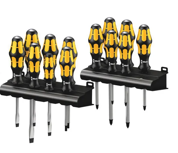 Sæt med 13 skruetrækkere i forskellige størrelser og 2 holdere.