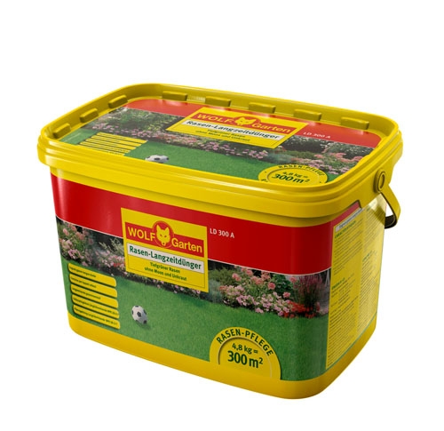 Wolf Garten langtidsvirkende plænegødning Giver en sund og dybgrøn græsplæne i 8-10 uger Alle græsplæner har brug for regelmæssig gødning for at have en sund og kraftig vækst. Anvendelsen af en langtidsvirkende gødning, der frigiver næringsstoffer over flere måneder og dermed reducerer gødningsintervallerne, er mere skånsom for miljøet. Granulatet kan let fordeles jævnt med spreder og overgødning eller forbrænding undgås./br> Pakningsstørrelsen er tilstrækkelig til ca. 300 m². Blanding: 28% nitrogen, 3% fosfat, 7% kaliumoxid, 2% magnesium